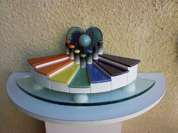 Après coup, en regardant la pièce avant assemblage, je me suis rendu compte que la terre était insérée dans un cœur formé par les demis ronds bleus de la voûte céleste et les pastilles arc en ciel !...