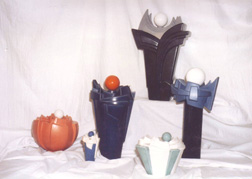 En fait, quand j’ai fait cette pièce, j’ai voulu intégrer la notion d’arc en ciel noir citée dans les « dialogues avec l’ange ». J’ai aussi cherché à symboliser la voûte céleste derrière la terre et finalement, involontairement, les plaques en verre bleues ont pris la forme des « tables de la loi »…