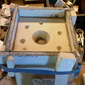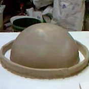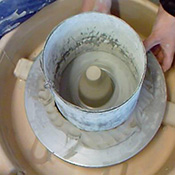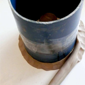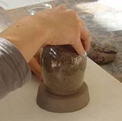 À la barbotine pour bloquer et jointer une anse posée sur 3 bouts de terre dans l’enterrage en plâtre (ou glacis).