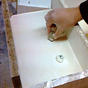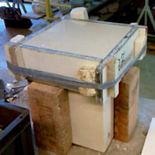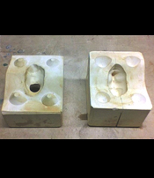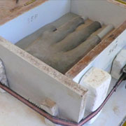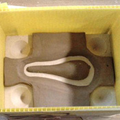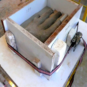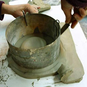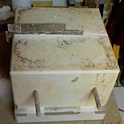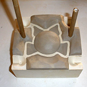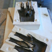 Avec du sable sec, au moment du moulage, pour lester le modèle creux jusqu’à la ligne de dépouille. |