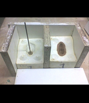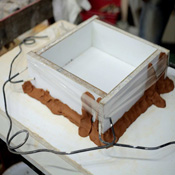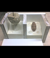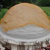 Modèle protégé par un plastique et calé avant l’enterrage.