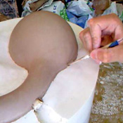 Barbotine diluée pour jointer l’interstice entre un modèle et son moule avant le savonnage enlever le surplus !