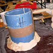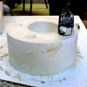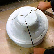 Pièce tournée épaisse à remplir au plâtre pour la rigidifier.
