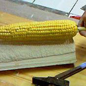 Avec le tranchant pour ouvrir un moule à petits coups de marteau.