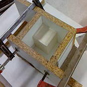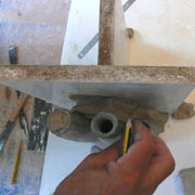 Coffrage avec une plaque ferme pour suivre la forme du modèle.