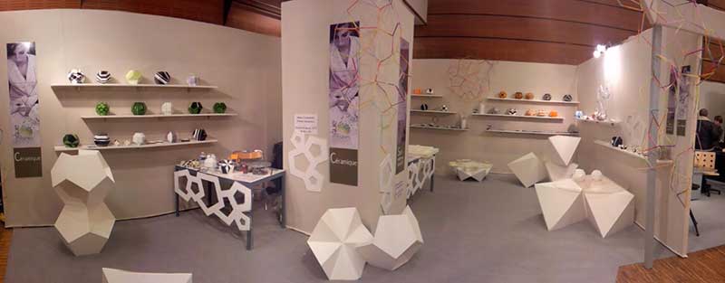 Carrousel du Louvre 2012 : Stand ateliers Céramique et Staff sur le thème du polyèdre, lycée du Gué à Tresmes (77).