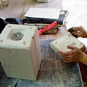 Ouverture forcée avec un bout de bois (augmente le volume d’un modèle en terre sacrifié).