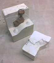 Indirect : ½ modèle + ½ piston en terre (coupés en 2). |