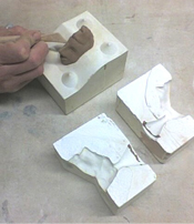 Ouverture forcée avec un coin (augmente le volume d’un modèle en plâtre sacrifié).